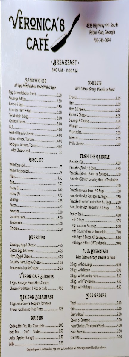 If you’re in the Rabun Gap area and have a craving for comforting meals served with a side of warmth and hospitality, look no further than Veronica's Cafe. Nestled at 4336 Hwy 441, this charming café has established itself as a local favorite known for its hearty breakfast options and inviting atmosphere. A wonderful place where the scent of freshly brewed coffee mingles with the buttery aroma of griddle-cooked pancakes and sizzling bacon, it’s a true gem in the heart of the community.